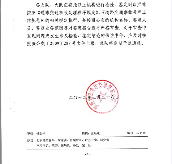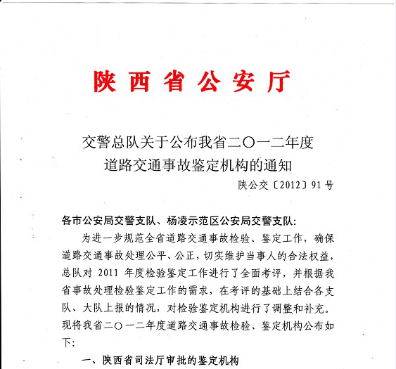我所入围陕西省2012年度道路交通事故鉴定机构名册
